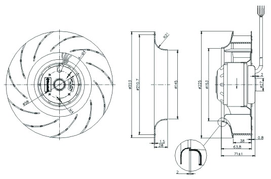 Model Number FJ225D, 225mm AC Centrifugal Fan