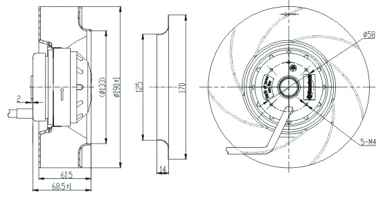 Model Number FH190S0000-068-020-2, 190mm AC Centrifugal Fan