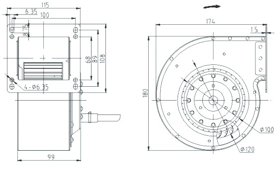 Model Number FD120B, 120mm AC Centrifugal Fan