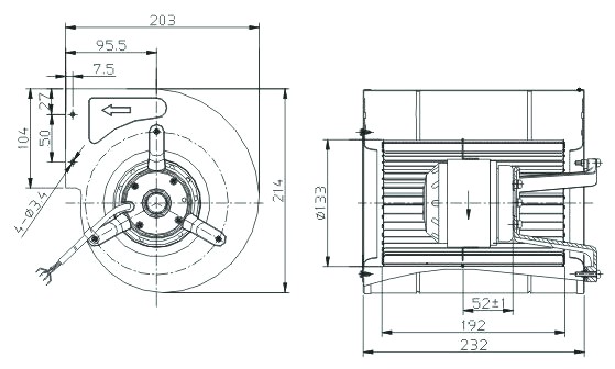 Model Number FS133C0000-068-035-2, 133mm AC Centrifugal Fan