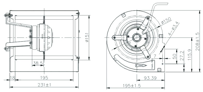 Model Number FS151A0000-068-020-4, 151mm AC Centrifugal Fan