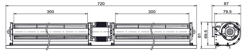 AC shaded type motor, temperature resistant aluminum alloy, ball or sleeve bearings. Maximum Pressure: 4.5mmAq (0.177inH2O), Maximum Air Flow: 184CFM (5.2m3/min)