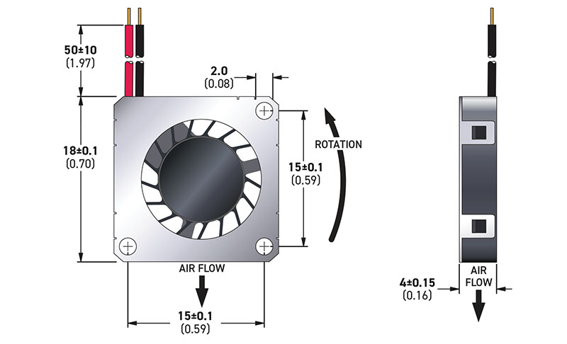Traditional fans and blowers include silicon steel motors with radial air-gaps. Miniaturization is difficult, operation is inefficient, and power loss is greater at higher temperatures. By using specially grooved bearings with Axial Air-Gap Technology, AIR-G Series Micro Fans and Blowers are smaller and more energy efficient than traditional fans and blowers and have almost no power loss at higher temperatures. |