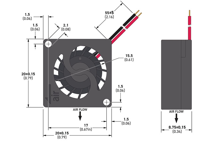 Traditional fans and blowers include silicon steel motors with radial air-gaps. Miniaturization is difficult, operation is inefficient, and power loss is greater at higher temperatures. By using specially grooved bearings with Axial Air-Gap Technology, AIR-G Series Micro Fans and Blowers are smaller and more energy efficient than traditional fans and blowers and have almost no power loss at higher temperatures. |