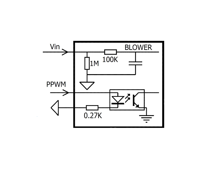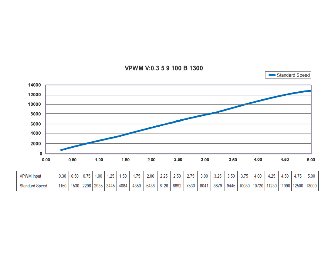 N/A The DC Voltage Signal (VPWM) Control adjusts the speed by applying an external DC Voltage signal. This voltage input "Vin" may have any value from 0.3 V to 5 VDC (at Vin=0, the blower stops). The blower speed will vary linearly and is proportional to the % change of the "Vin" value, corresponding to the same % change of the maximum speed. The VPWM Control is applied to the external WHITE wire. |