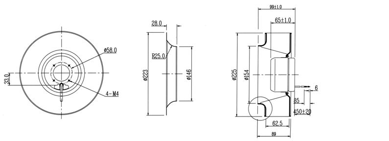 Model Number R1D225-AB01-01, 225mm DC Centrifugal Fan
