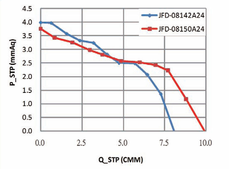 512mm (20.2in) to 792mm (31.2in) lengths. DC Brushless type motor, temperature resistant aluminum alloy, ball or sleeve bearings. Maximum Pressure: 3.0mmAq (0.118inH2O) to 3.9mmAq (0.153inH2O), Maximum Air Flow: 282CFM (8.0m3/min) to 469CFM (13.3m3/min).