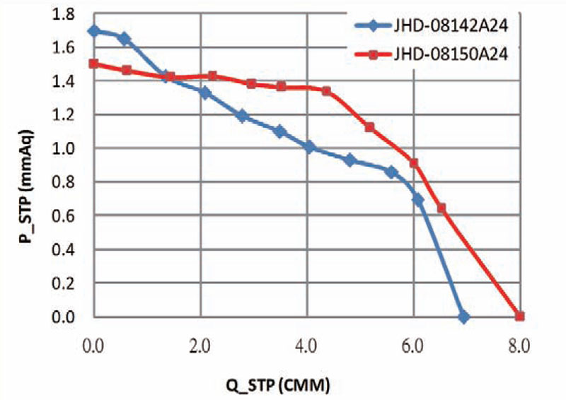 503mm (19.8in) to 783mm (30.8in) lengths. DC Brushless type motor, temperature resistant aluminum alloy, ball or sleeve bearings. Maximum Pressure: 1.3mmAq (0.051inH2O) to 1.7mmAq (0.066inH2O), Maximum Air Flow: 243CFM (6.9m3/min) to 423CFM (12.0m3/min).