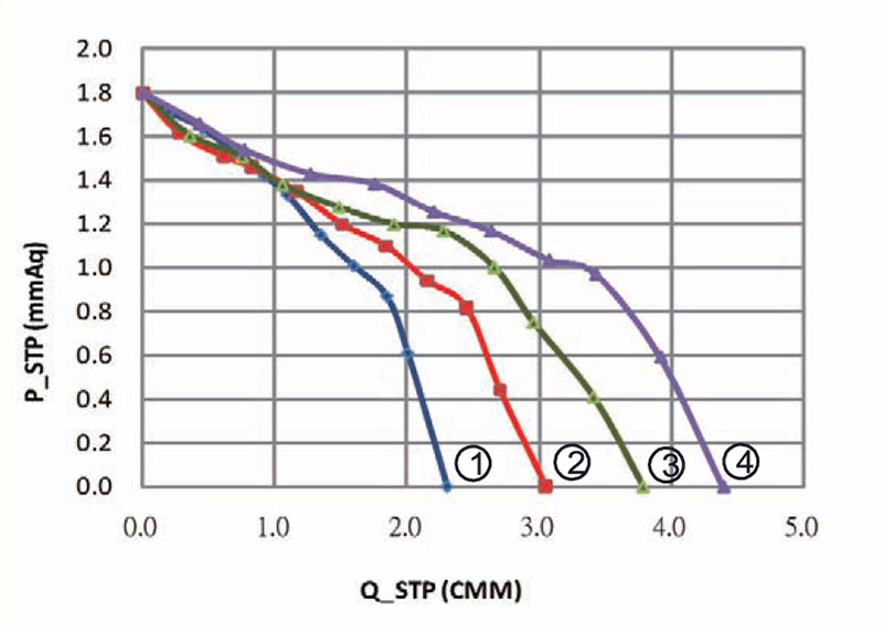 306mm (12.0in) to 486mm (19.1in) lengths. EC fan type, temperature resistant aluminum alloy, ball or sleeve bearings. Maximum Pressure: 0~1.8mmAq (0~0.070inH2O), Maximum Air Flow: 0~81.22CFM (0~2.3m3/min) to 0~155.38CFM (0~4.4m3/min).
