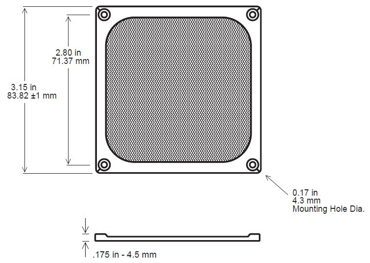 Model Number AFK-80, 80mm Aluminum Fan Filter Assembly