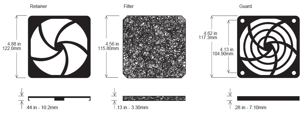 Model Number PFK-120, 120mm Plastic Fan Filter Assembly
