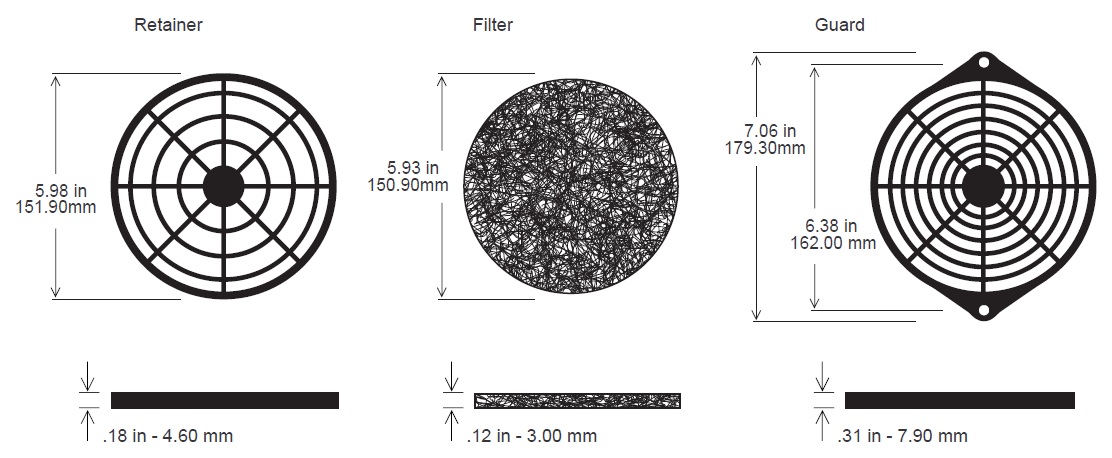 Model Number PFK-172, 172mm Plastic Fan Filter Assembly