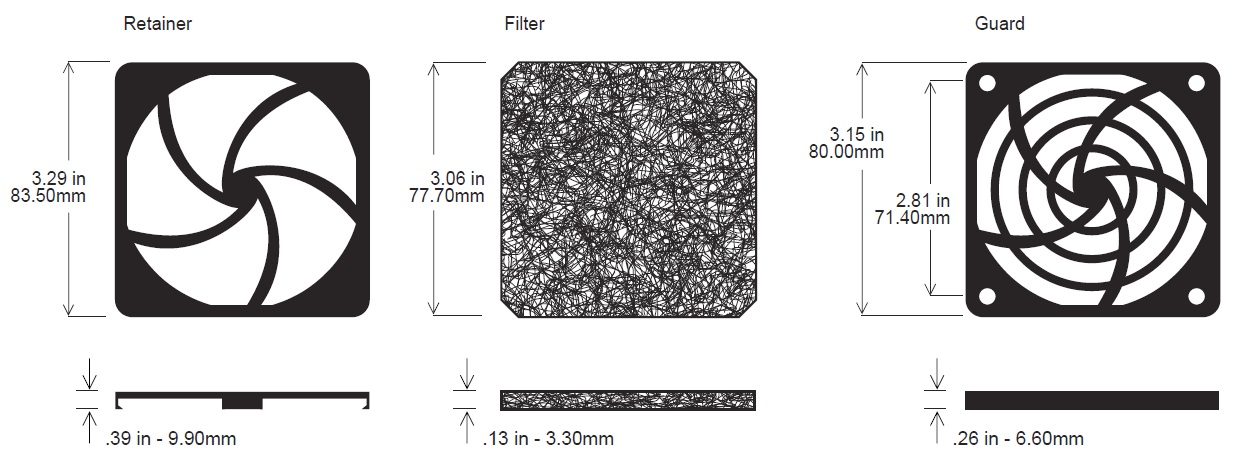 Model Number PFK-80, 80mm Plastic Fan Filter Assembly
