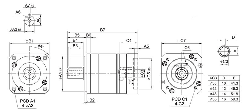 The planetary arm bracket and the output shaft are one-piece constructed to increase torsional rigidity and accuracy. The entire structure is machined for controlling accuracy in the specified tolerance.