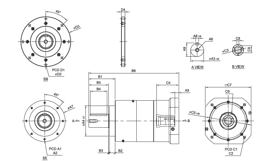 High Torque Higher output torque is compared to spur gear planetary gear reducers. High Stability Employs high tensile strength alloy steel. Gear hardening is made for the entire gear which extends gear service life and maintains high accuracy after a long period of operation. High Speed Reduction Ratio The gear reducer is a modular design. The planetary gear box can be connected. The speed reduction ratio can reach over 1/10000. |