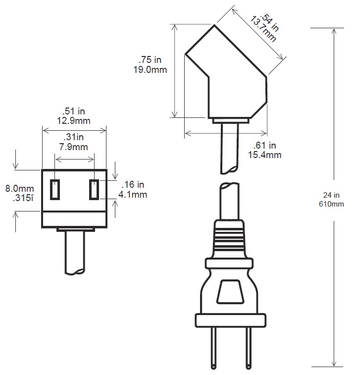 45 DEGREE POWER CORD (with wall plug)