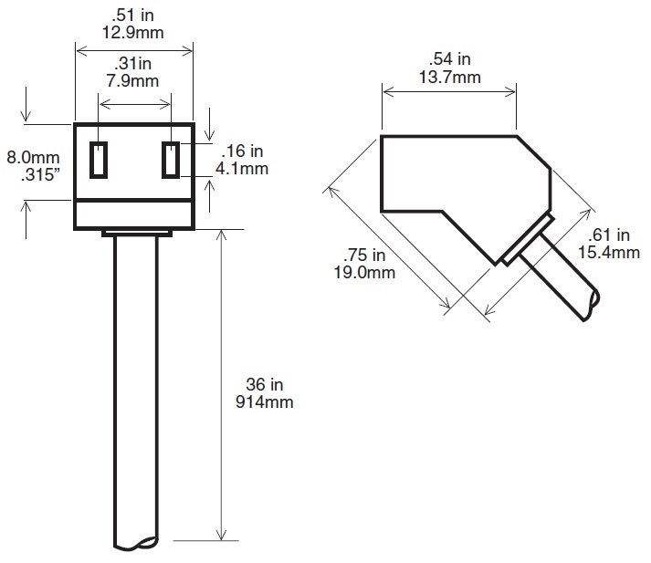 • Wire: SPT1, 2-conductor 105°C, 300 volts