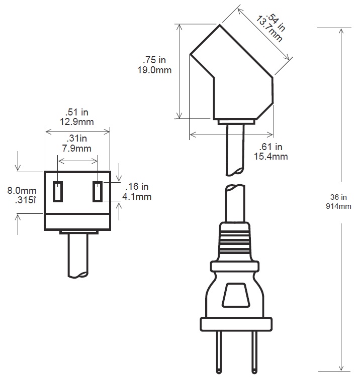 • Type: 2-contact 45 degree plug to wall plug