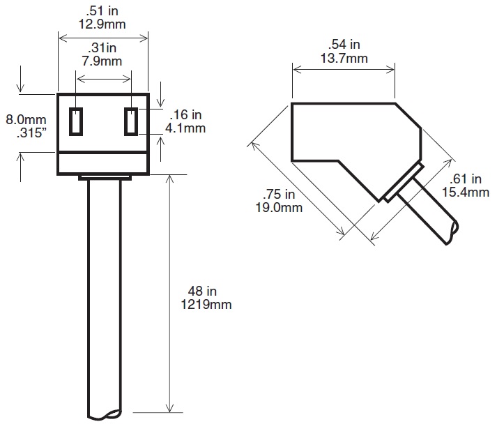 • Type: 2-contact 45 degree plug to open wires