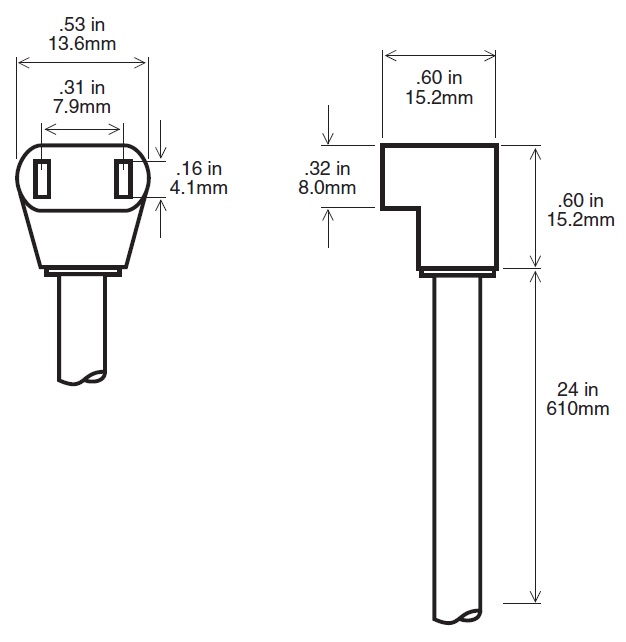 • Type: 2-contact 90 degree plug to open wires
