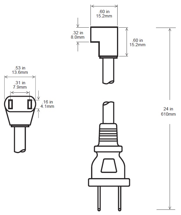 90 DEGREE POWER CORD (with wall plug)