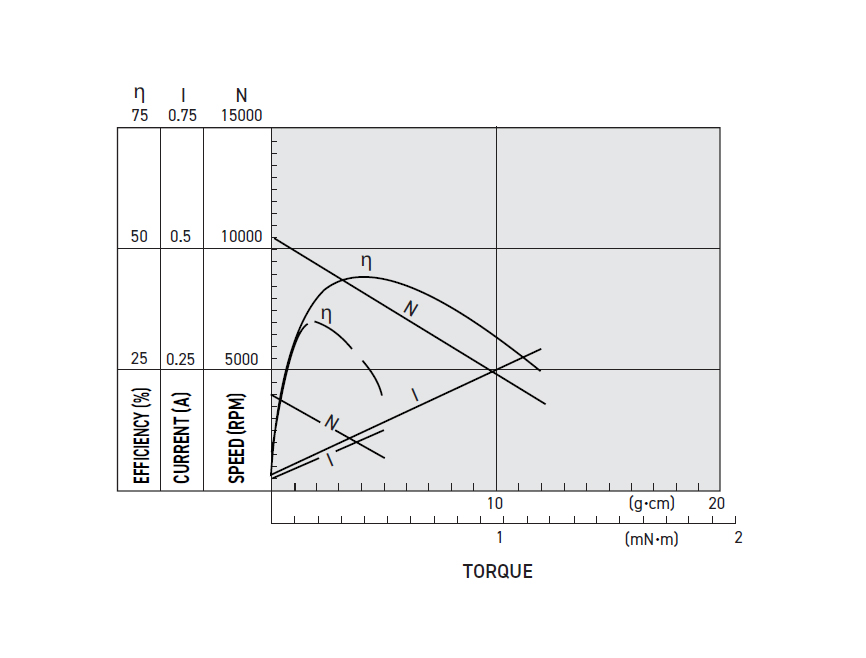 Torque (At Maximum Efficiency) for 2.5 Volt (V) Nominal Voltage |
