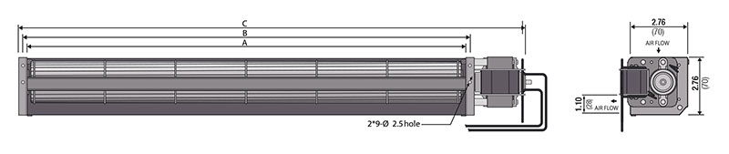 | JF-05060A23-3B | Length A N/A 24.0 in610 mm | Length B N/A 24.4 in620 mm | Length C N/A 27.2 in692 mm | Rated Voltage N/A 230 V | Pressure (P) N/A 2.8/3.0 mmAq0.11/0.12 inH2O | Air Flow Q N/A 5.4/4.2 m³/min191/148 ft³/min | QUOTE |