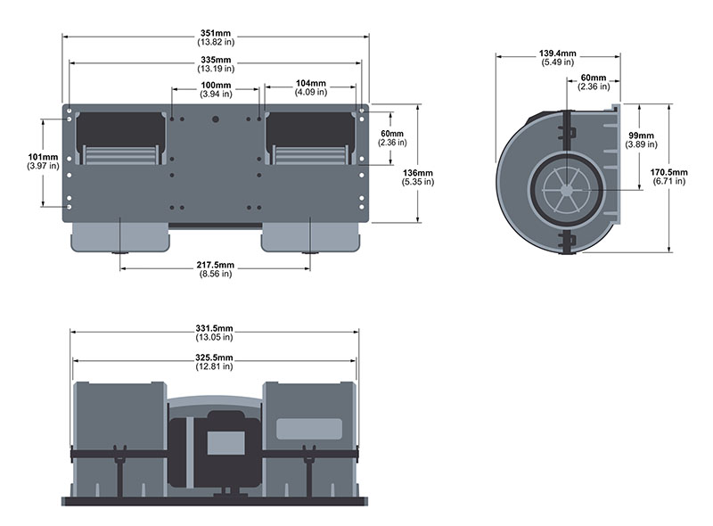 RA24BL001-B40 Series Variable Speed Dual Wheel Design Brushless Direct Current (DC) Centrifugal Blowers
