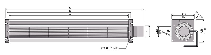 | JH3-08142A24-3B | Length A N/A 16.5 in420 mm | Length B N/A 17.3 in440 mm | Length C N/A 20.4 in518 mm | Rated Voltage N/A 24 V | Pressure (P) N/A 3.5 mmAq0.14 inH2O | Air Flow Q N/A 7.2 m³/min254 ft³/min | QUOTE |