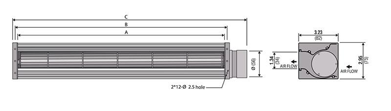| JM3-05042A24-3B | Length A N/A 16.9 in430 mm | Length B N/A 17.3 in440 mm | Length C N/A 19.1 in486 mm | Rated Voltage N/A 24 V | Pressure (P) N/A 2.0 mmAq0.08 inH2O | Air Flow Q N/A 3.8 m³/min134 ft³/min | QUOTE |