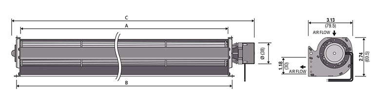 | JQ3-04536A24Q-3B | Length A N/A 14.2 in360 mm | Length B N/A 14.7 in374 mm | Length C N/A 16.7 in423 mm | Rated Voltage N/A 24 V | Pressure (P) N/A 3.1 mmAq0.12 inH2O | Air Flow Q N/A 3.2 m³/min113 ft³/min | QUOTE |