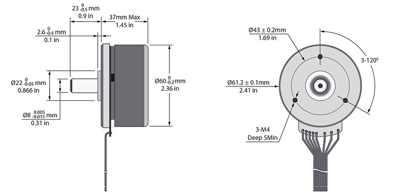 Flat Motion Series 60 Millimeter (mm) External Rotor Brushless Direct Current (BLDC) Motors