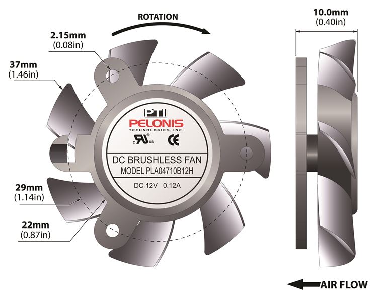 | PLA04710B12HH-G | N/A 2.16 Watt (W) Power PLA04710B-G Series Type G Frameless Fan | Voltage N/A 12.0 V | Rated Current N/A 0.18 A | Power N/A 2.16 Watts | Speed N/A 6000 rpm |