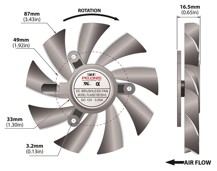 | PLA09215B12H-H | N/A 6.60 Watt (W) Power PLA09215B-H Series Type H Frameless Fan | Voltage N/A 12.0 V | Rated Current N/A 0.55 A | Power N/A 6.60 Watts | Speed N/A 3500 rpm |