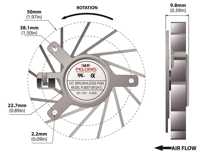 | PLB05710B12HH-C | N/A 3.60 Watt (W) Power PLB05710B-C Series Type C Frameless Fan | Voltage N/A 12.0 V | Rated Current N/A 0.30 A | Power N/A 3.60 Watts | Speed N/A 4200 rpm |