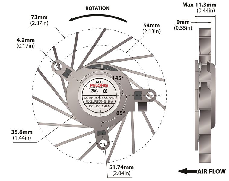 | PLB07010B12L-A | N/A 18.2 Watt (W) Power PLB07010B-A Series Type A Frameless Fan | Voltage N/A 5.0 V | Rated Current N/A 0.20 A | Power N/A 2.40 Watts | Speed N/A 1800 rpm |