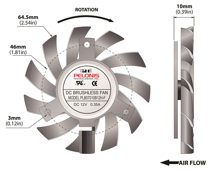 | PLB07010B05L-F | N/A 1.75 Watt (W) Power PLB07010B-F Series Type F Frameless Fan | Voltage N/A 5.0 V | Rated Current N/A 0.35 A | Power N/A 1.75 Watts | Speed N/A 2500 rpm |