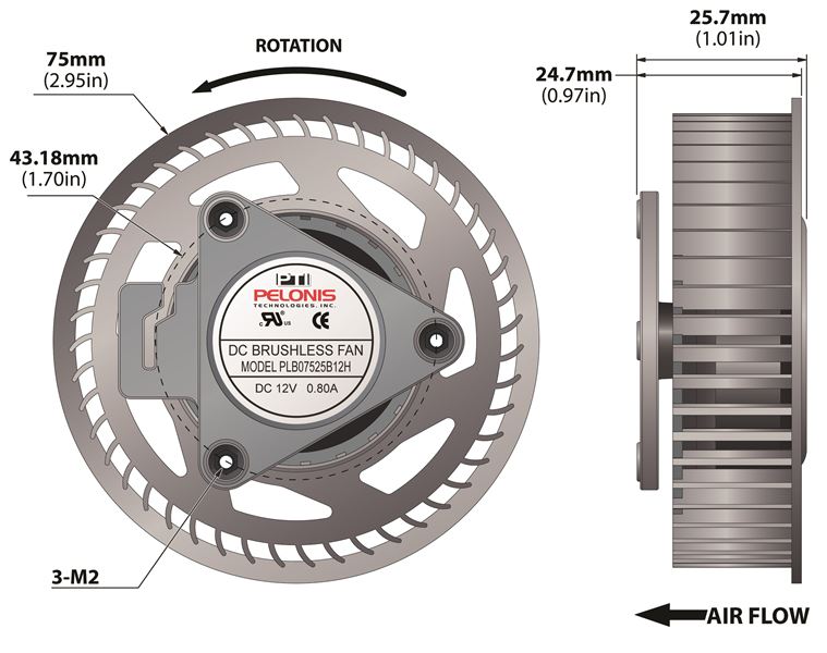 | PLB07525B12M | N/A 6.00 Watt (W) Power PLB07525B Frameless Fan | Voltage N/A 12.0 V | Rated Current N/A 0.50 A | Power N/A 6.00 Watts | Speed N/A 3000 rpm |