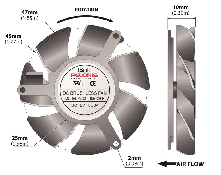 | PLD05010B12HH-F | N/A 3.00 Watt (W) Power PLD05010B-F Series Type F Frameless Fan | Voltage N/A 12.0 V | Rated Current N/A 0.25 A | Power N/A 3.00 Watts | Speed N/A 6500 rpm |