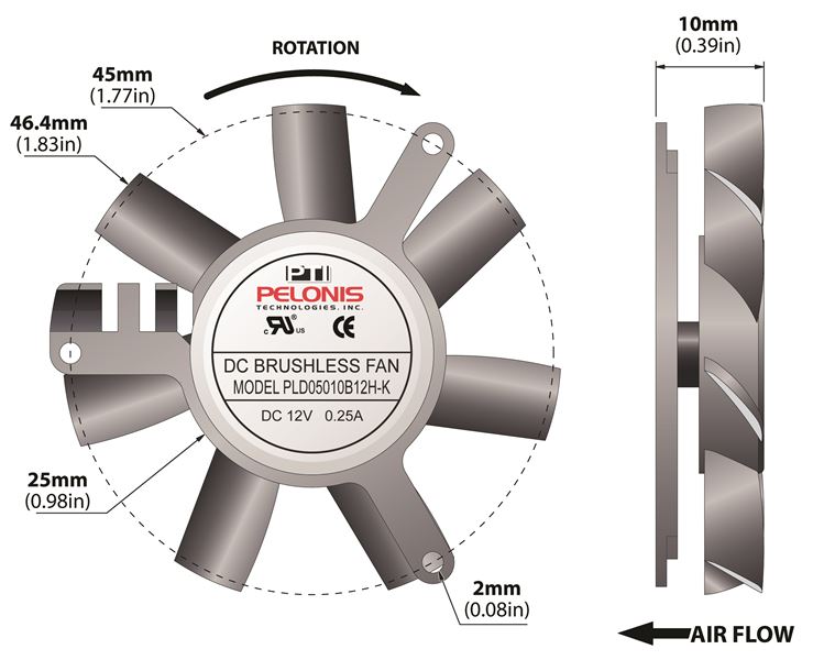 | PLD05010B12H-K | N/A 3.00 Watt (W) Power PLD05010B-K Series Type K Frameless Fan | Voltage N/A 12.0 V | Rated Current N/A 0.25 A | Power N/A 3.00 Watts | Speed N/A 6000 rpm |