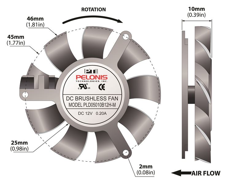 | PLD05010B12H-M | N/A 2.40 Watt (W) Power PLD05010B-M Series Type M Frameless Fan | Voltage N/A 12.0 V | Rated Current N/A 0.20 A | Power N/A 2.40 Watts | Speed N/A 5500 rpm |