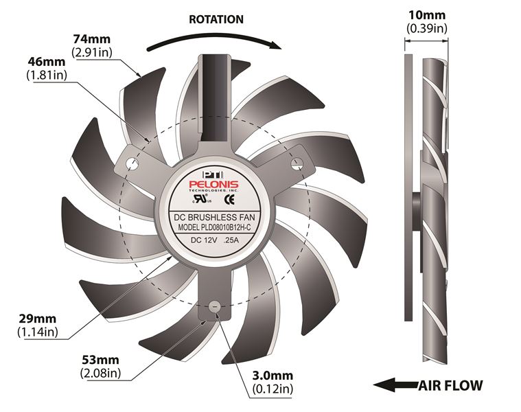 | PLD08010B12HH-C | N/A 4.20 Watt (W) Power PLD08010B-C Series Type C Frameless Fan | Voltage N/A 12.0 V | Rated Current N/A 0.35 A | Power N/A 4.20 Watts | Speed N/A 4000 rpm |