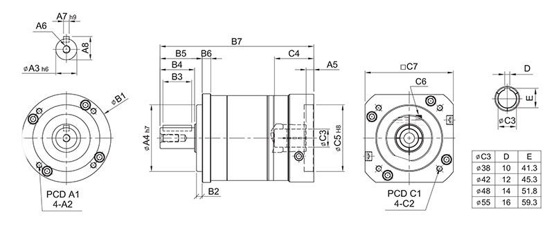 | FE50-7 | Ratio N/A 7 | Maximum Radial Force (F2rB) N/A 750 N | Maximum Axial Force (F2aB) N/A 325 N |