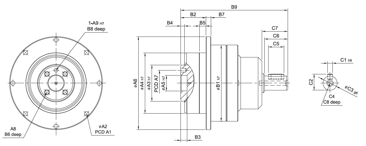 High rigidity and high torque are achieved by integrant needle roller bearings and a one-piece construction.