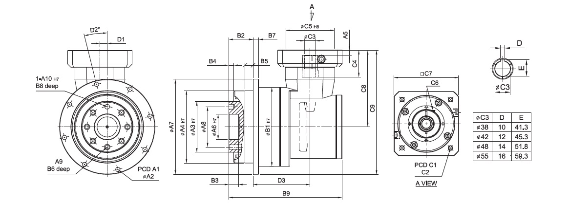 High rigidity and high torque are achieved by integrant needle roller bearings and a one-piece construction.