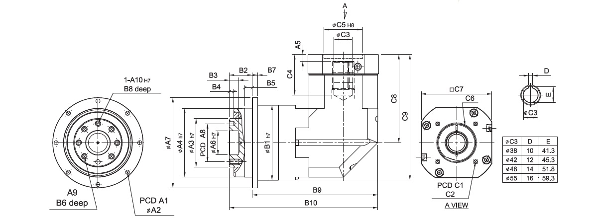 High rigidity and high torque are achieved by integrant needle roller bearings and a one-piece construction.